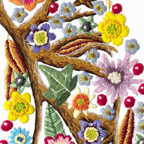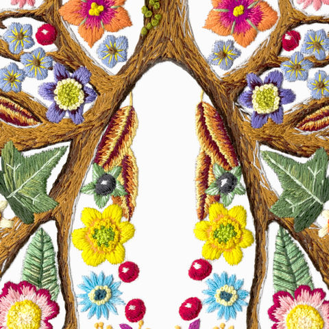 The floral lungs was the first embroidered artwork from the ‘Nature & Us’ collection. The design is based on an anatomical diagram of human lungs.
